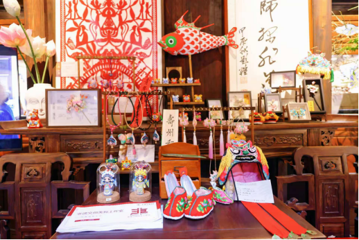活动首章“东风更放花千树”,如同一幅徐徐铺展的徽州非遗画卷,将古老工艺的厚重与创意巧思的灵动完美结合。在校园展厅内,傩戏面具静静陈列,色彩浓烈的纹样间,仿佛仍能看见古徽州祭祀祈福的庄重场景;木刻版画以刀为笔,在方寸木版上复刻徽派建筑的飞檐翘角与江南水乡的烟雨朦胧;绒花匠人以蚕丝为料,指尖翻飞间,一朵朵色泽温润的绒花绽放;民俗服饰上的刺绣图案蕴含着徽州女子的细腻情感?;罩萃袈镉愕仆ㄌ辶鞴?,鱼鳞纹路细腻逼真;大型剪纸作品以宏大篇幅再现徽商的繁华盛景。手工艺体验区的师生们在葫芦上精雕细刻,将徽州山水、民俗故事化作指尖的立体诗篇。每一件作品、每一次创作,都是非遗与青春的对话,是传统与创新的交融。
